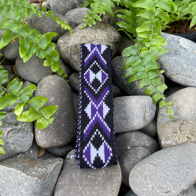Pātiki 1.5 inches wide. Purple, Black and white.
