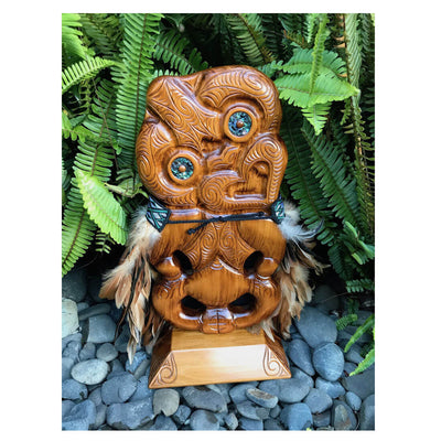 This piece of art boasts super fine detail, pāua inlay. Tiki was the first mortal man, formed by Tumatauenga, and endowed with life. Tumatauenga, is one of the sons of Father Sky and Mother earth.