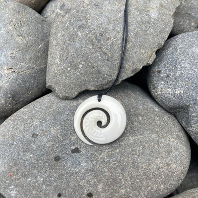 A Koru, represents the fern frond as it opens bringing new life and purity to the world. It also represents peace, tranquility and spirituality along with a strong sense of re growth or new beginnings.