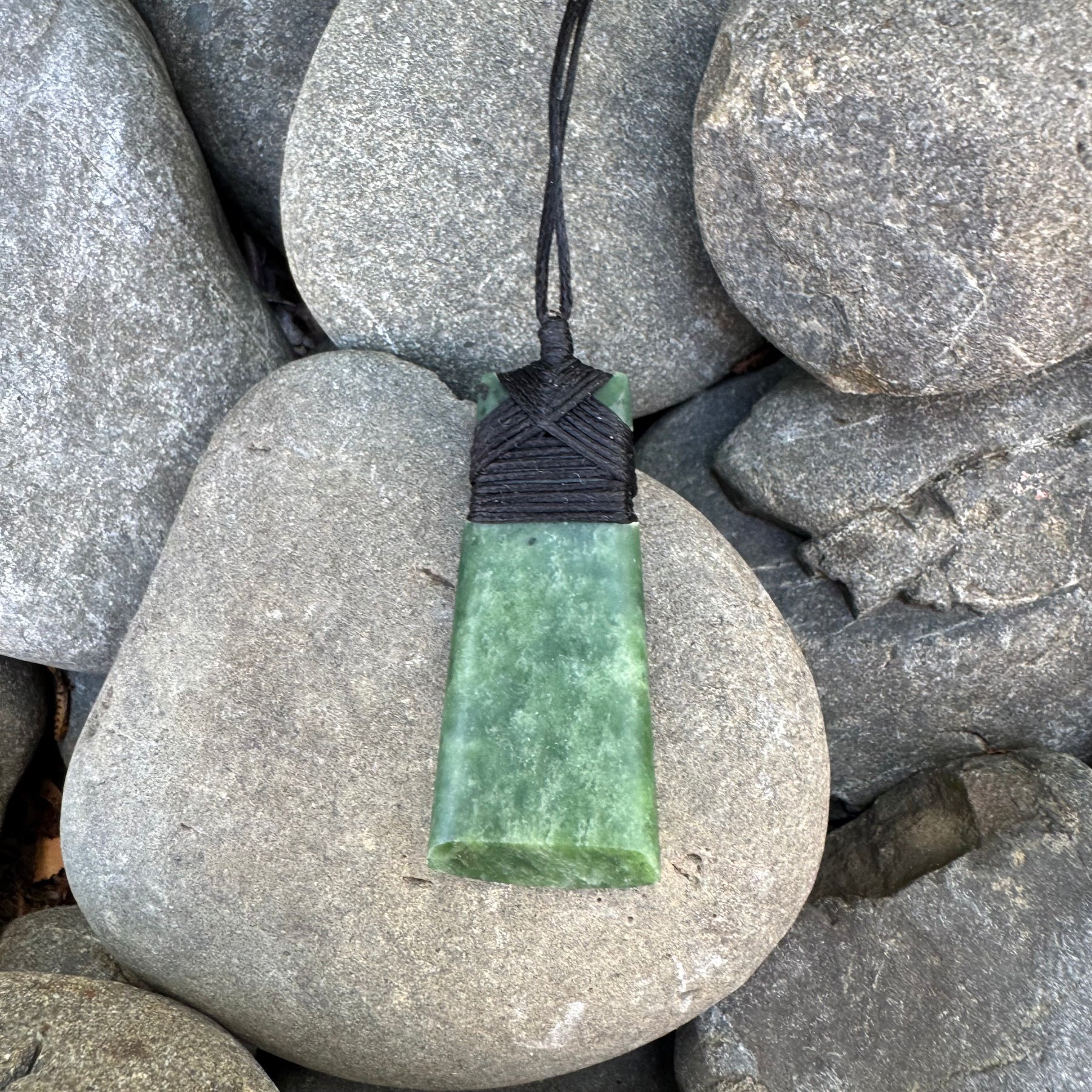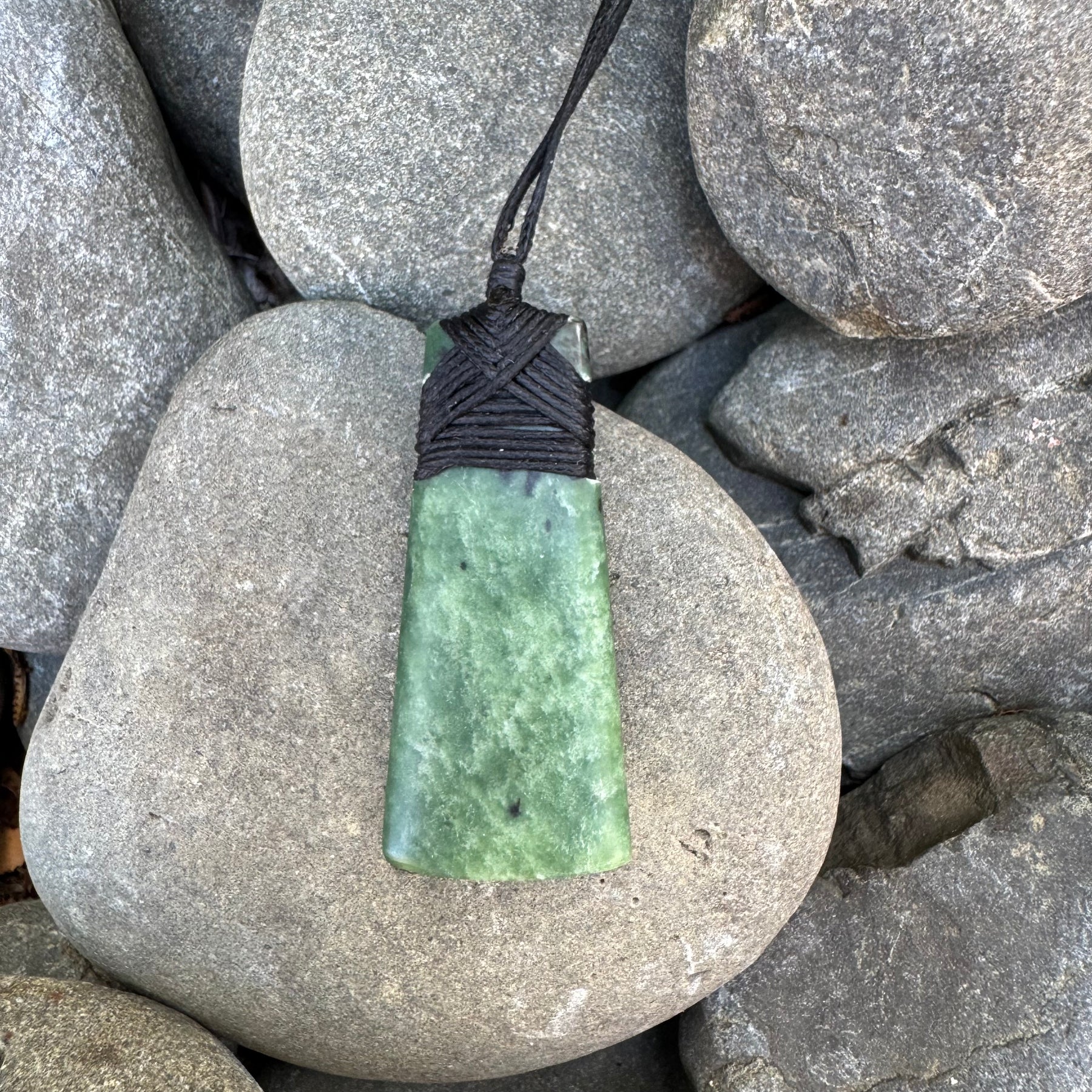 This design represents the Toki - Adze which was used as a cutting tool or carving tool. It was such an important tool in Maori life that it became regarded as a symbol of power, authority and good character.