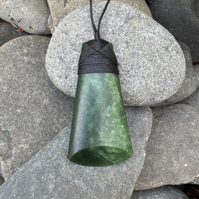 This design represents the Toki - Adze which was used as a cutting tool or carving tool. It was such an important tool in Maori life that it became regarded as a symbol of power, authority and good character.