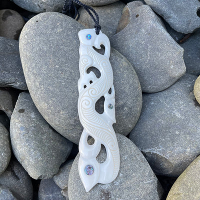 The Manaia is an ancient mythical being with a birds head and a human form. It is said to be the messenger between the earthly world of mortals and the domain of the spirits illustrating the strong links the Maori have with spirituality and the spirit world. It is a holder of great spiritual energy and is a guardian against evil.