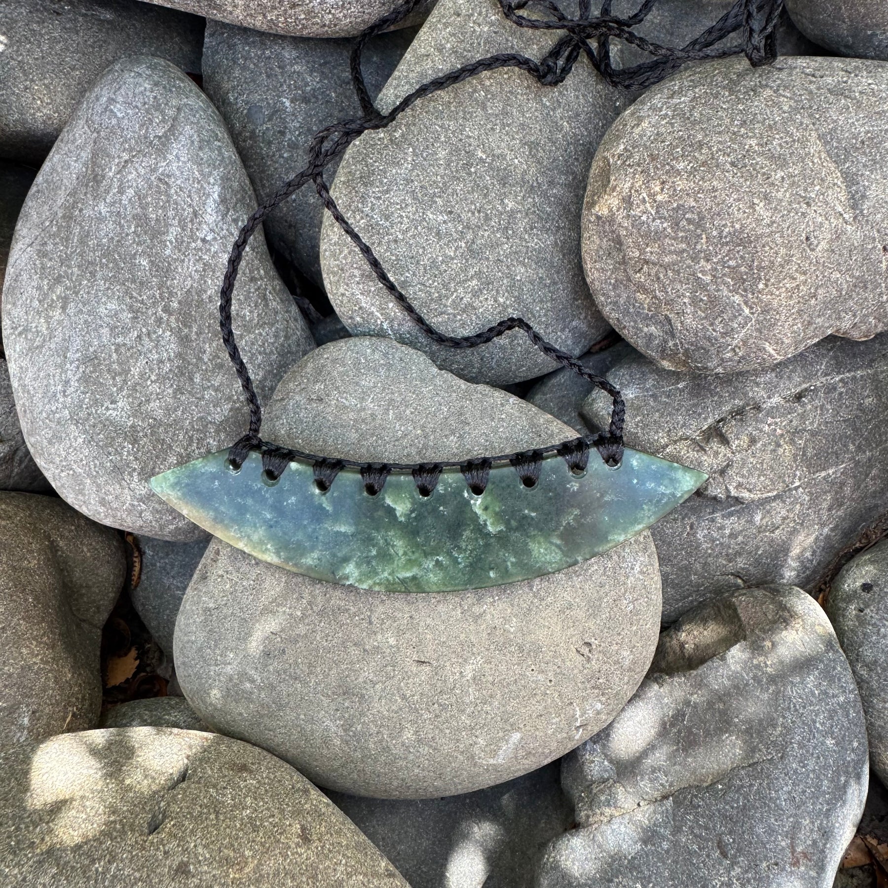 Includes a waxed cord, kete (bag) and a detailed description of the meaning of the carving.