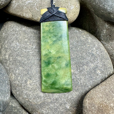 This design represents the Toki - Adze which was used as a cutting tool or carving tool. It was such an important tool in Maori life that it became regarded as a symbol of power, authority, and good character.