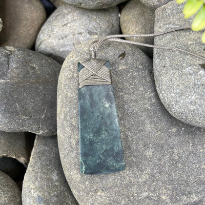 Includes a waxed cord, kete (bag) and a detailed description of the meaning of the carving.
