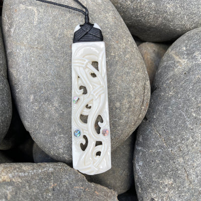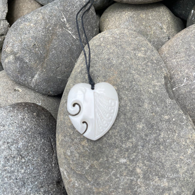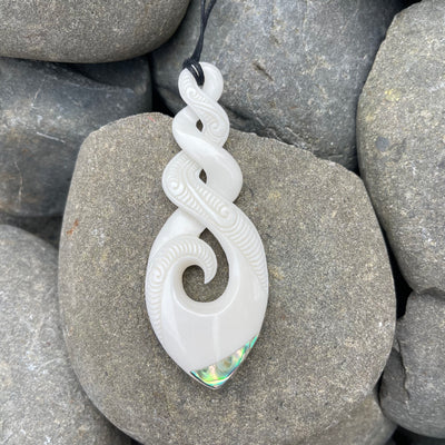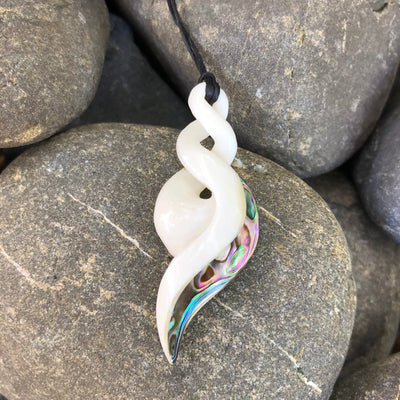 Includes a waxed cord, kete (bag) and a detailed description of the meaning of the carving.